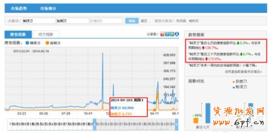 可以看出今年六月份與去年相比搜索指數直線上升,這近兩個月也迎來了一個小高峰。針對市場這部分需求,我們可以參加一下如淘金幣和聚劃算這樣的活動。從直通車來說,符合人群特征的定向投放,關鍵詞和站內站外的出價,定向參考千人千面的定向操作,加詞方向也是以精準熱詞剃須刀和刮胡刀這樣的大詞為方向。