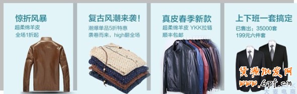 當時確定選擇使用這個展位之后,由于(店主的)美工也沒有太多的想法和創意,我們就建議美工,隨便去詳情頁勾一些圖,分別從功能,外觀,模特圖三方面去找三張圖,再看看目前店鋪里面推廣的寶貝在搞什么活動寫一些相關文案上去,三張圖都一樣,目的是先找出功能,外觀,模特圖看哪一類的點擊比較好。