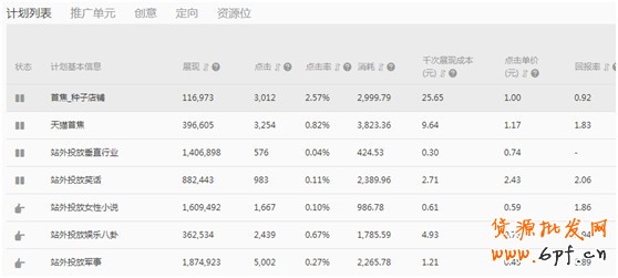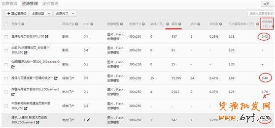 3、資源位——務(wù)必要多,就算你出價低,每個資源位只有1000個PV,但是你有100個資源位,就有10W的PV了。重點資源位數(shù)據(jù)反饋好的一定要單獨做計劃來重點調(diào)整價格,創(chuàng)意,定向。