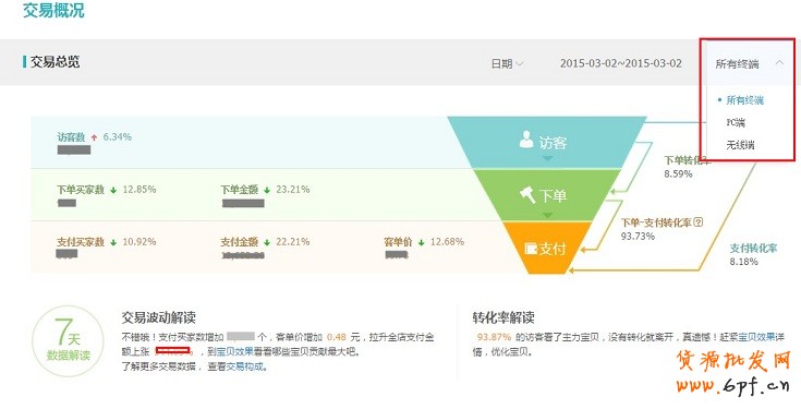 交易分析,我們可以知道店鋪的訪客數、下單買家數、轉化率、銷售額等等,通過7天數據解讀,讓我們對商品交易數據的波動一目了然,從而最快速的做出調整。