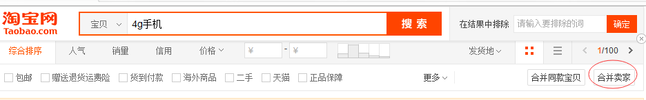 而且我們現(xiàn)在通過搜索入口右上角的“合并賣家”功能進(jìn)去以后可以發(fā)現(xiàn)里面都是不顯示寶貝銷量的,合并前,是顯示銷量和付款人數(shù)。