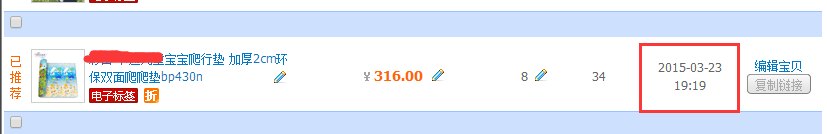 再來看一個(gè)新規(guī)則變化,15年3月29號開始有賣家反應(yīng)現(xiàn)在編輯寶貝詳情頁或者寶貝首圖后寶貝上下架會進(jìn)行重置,于是筆者也親自測試了下,編輯了一款寶貝的詳情頁。