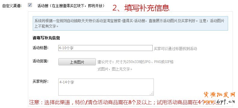 注意:1、天天特價、店鋪清倉,活動商品需在8個及以上;試用活動商品需在4個及以上;