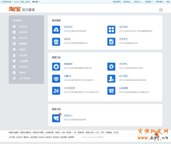 新版本的賣家寶貝管理分為首頁和功能頁兩部分。首頁如下圖所示: