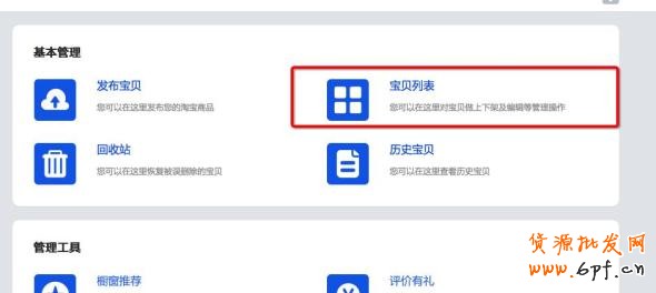 原有的櫥窗推薦、VIP設置、愛心捐贈、回收站、歷史寶貝、評價有禮、拉人有獎、24小時發貨、體檢中心等功能現在全部作為單獨的功能組件提供服務,可以在寶貝管理首頁找到入口。