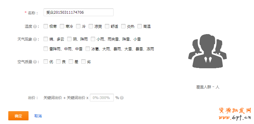 關于出價,是關鍵詞出價+關鍵詞出價X溢價(溢價范圍在0%-300%)。覆蓋人群,是所選擇的維度下所包含覆蓋到的人群。每個維度是可以疊加選取的,相對應的人群也就會逐漸的減少,一般都是單個的一個維度的覆蓋人群數是最多的。