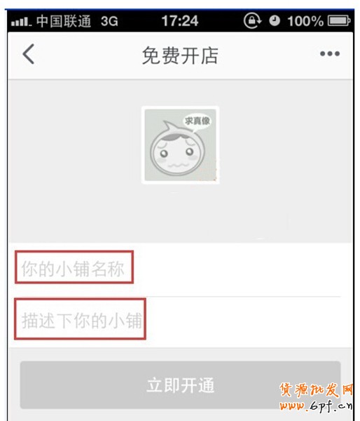 3、點擊進入“免費開店”頁面后,輸入店鋪名稱和描述,即可開通。