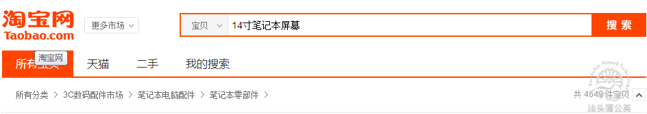 在整個14寸筆記本屏幕的搜索中,共有4649款寶貝,整個類目的競爭方面較之大類目小了很多。