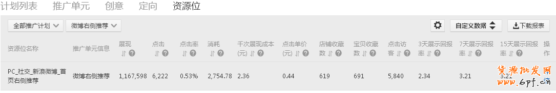 1、站外位置選擇:因為這個位置之前測試了比較多的站內位置,效果不如人意,所以想到了競爭相對站內較小的站外位置。因為是女裝類目,比較適合的位置就是微博位置,使用微博的大多數是年輕女性,所以投放微博位置是一個比較好的選擇。下面這2個位置都是比較適合投放女裝的位置位置,投放預算600左右。