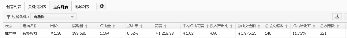 整個賬戶的消耗大概在1000元左右,消耗比較大,所以除了關鍵詞引流,另外還可以選擇定向的輔助。