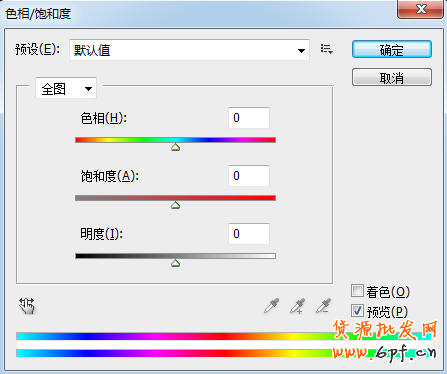 色相/飽和度:圖像——調整——色相/飽和度(Crtl+U),相對色階來說,操作略微簡單,界面如下: