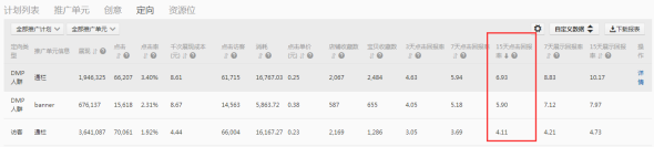 站內,站外選擇的定向是一樣的,但是在定向的消耗能力上,站內訪客定向和DMP定向的消耗基本在1:1,而站外資源位是訪客定向消耗大一些,由此可以看出站外資源位用于拓展店鋪流量和店鋪人群是非常有利的。