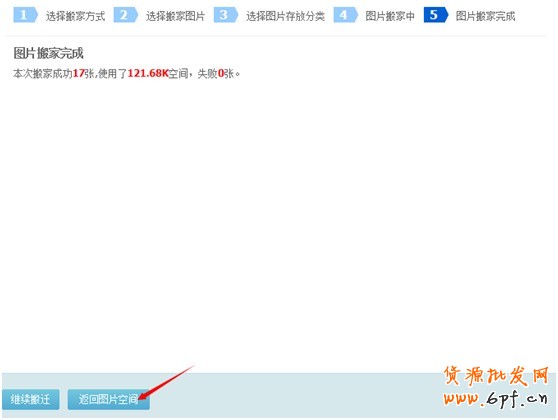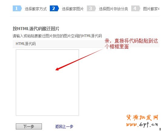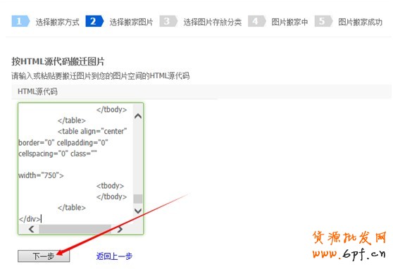 6.按上面步驟一步步完成后,搬家成功,點(diǎn)擊“返回圖片空間”,復(fù)制搬家后的html模板代碼,去店鋪裝修頁(yè)面,新建或者打開自定義模塊,黏貼代碼即可。