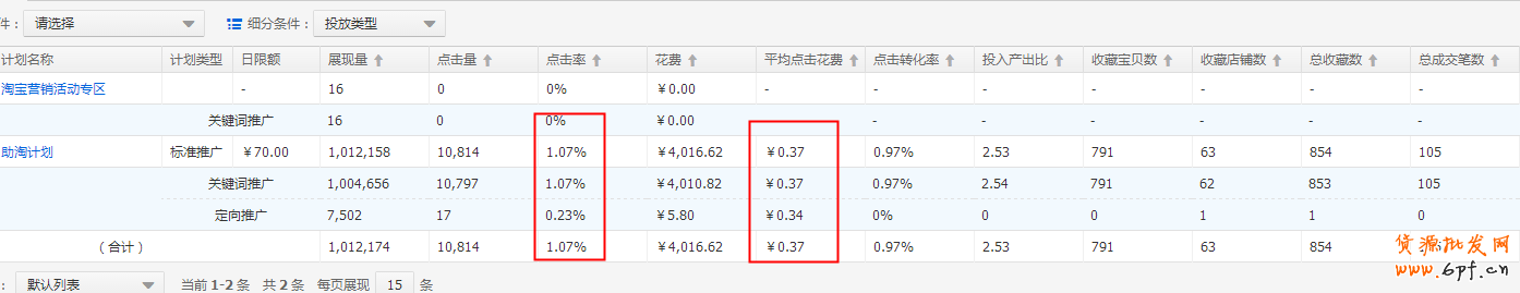 從投放類型看,由于前期的測試,定向的效果并不理想,所以期間關閉了定向推廣,所以關鍵詞推廣基本是全部的流量來源,而且它的點擊率也要較高于整體點擊率,轉化也均有關鍵詞推廣帶來。