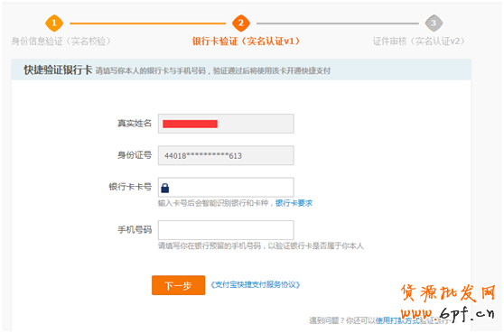 4.填寫完支付寶和身份信息后,點擊確定后,還需要用戶填寫銀行卡卡號并確定同意協議,實名認證就此完成。