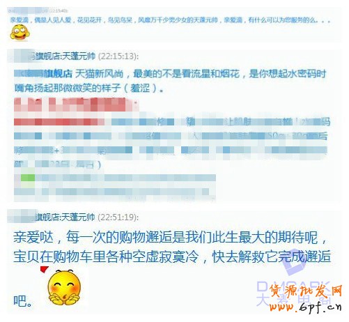 除此之外,我們還可以在客服話語上花心思。別人用的是親,而我們就可以使用主人、小主、官人、娘娘等個性化的稱呼;在產品包裝上,印上我們的品牌形象,再加上一些符合品牌風格的文案,如果是賣萌耍賤風格,我們就可以找一些網絡段子、搞笑對話等文案。