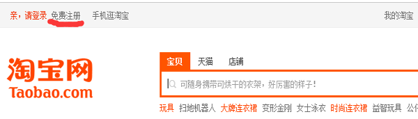 如下圖,來到淘寶網(wǎng)首頁在左上方,免費(fèi)注冊(cè)。