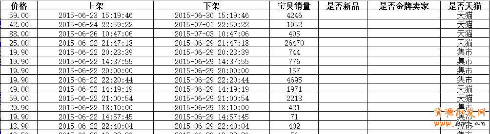 這里已經有了我們所需要的上下架時間,這時候你要做好記錄,什么關鍵詞,詞的寶貝數是多少,什么時間點拉下來的。