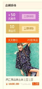當(dāng)買家瀏覽您店鋪里的活動(dòng)時(shí),可以看到店鋪紅包并領(lǐng)取。