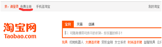 一、下圖為免費注冊淘寶會員賬號的入口,當用戶進入免費注冊頁面,先同意協議——再選擇注冊方式(手機號碼和郵箱)——填寫賬號名、密碼、會員昵稱(建議使用中文名,如果使用英文名需要驗證多一次)——完成。