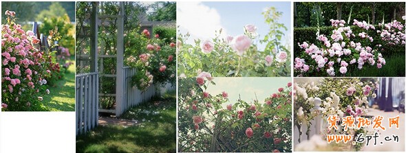 分別對花和柵欄進行調色,同時添加遠景和近景,遠景模糊調亮,近景模糊調暗;另外,桃色跟左邊的花的方法一樣,最終的效果就是要融入環境。