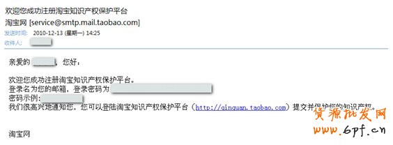 2、您在收到 “歡迎您成功注冊淘寶知識產權保護平臺”的郵件后可直接登錄平臺。