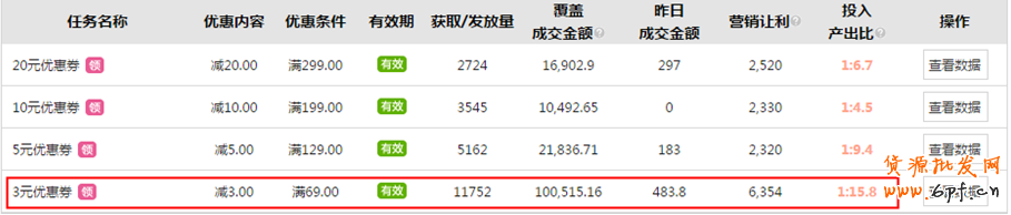 設置優惠券要注意兩點,一點是面額,一個點是門檻,我們就要根據店鋪的綜合情況來考慮了!我們先從下面的例子中學習一下!