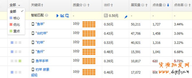 至于重點關(guān)鍵詞,這個指的是ROI虧損的關(guān)鍵詞,這類詞就像班級的差生,老師需要重點關(guān)注一樣,有時會決定班級的平均成績,就像這個重點關(guān)鍵詞一樣,這類關(guān)鍵詞決定了整個直通車的ROI高低的問題。那么對于重點關(guān)鍵詞我的建議是借助匹配方式去優(yōu)化來調(diào)整你的流量大小。當然前提你的先把關(guān)鍵詞優(yōu)化到10分。