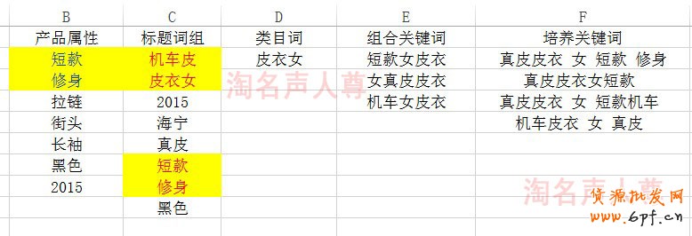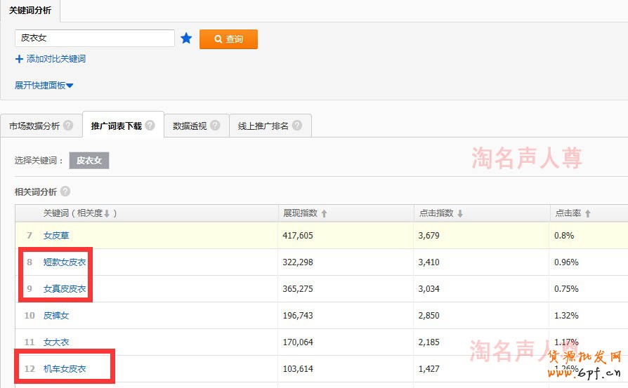 ⑤我們通過直通車工具流量解析—皮衣女找到了。3個關鍵詞:短款女皮衣、女真皮皮衣、機車女皮衣。還可以找的更多,我這里就不一一演示 。那么接下的表格就是這樣了。如果我把皮衣女定義為一級詞,那么這3個就是二級詞了。