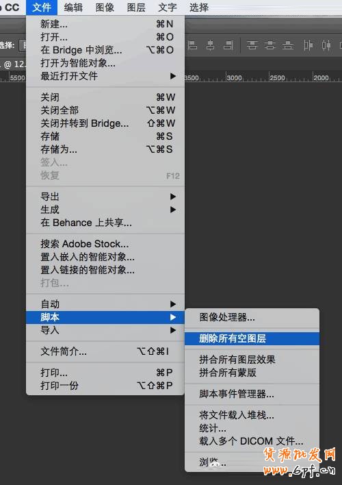 至于空白圖層怎么刪除,也很簡單,這時候我們在“文件”--“腳本”--“刪除所有空白圖層”即可。