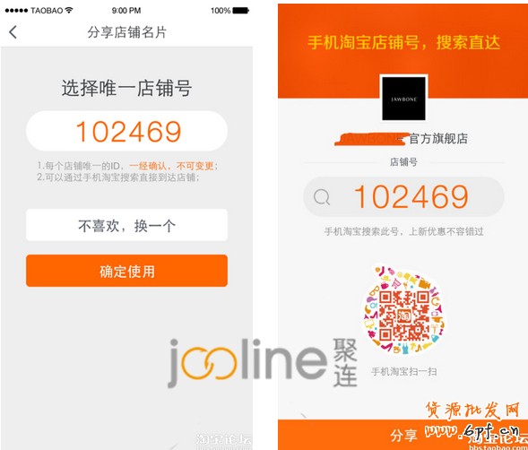 3.專屬6位直達號,具備唯一性。每個店鋪均可生成首次6位數店鋪直達號及店鋪二維碼名片,除了能分享到微信之外,還可以分享到微淘、微博、通訊錄、芒果聯盟等多個社交平臺,讓商家自定義流量入口,商家盡享無線時代無處不在的流量紅利。