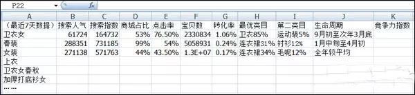 建一個品類關鍵詞詞庫,比如你店鋪有多個衛衣款式的衣服,把所有與衛衣有關,且符合你店鋪寶貝的關鍵詞找出來,做成表格,統計并計算好各種數據,這個品類關鍵詞庫將在以后關鍵詞替換優化和全店關鍵詞布局中常常用到。一些要注意的是,類目詞和關聯熱詞也需要加上,是為了更好地和長尾詞進行對比,還需要統計主要的那十來個主要關鍵詞往年變化曲線,對應的上下架提前展現時間。一個品類關鍵詞庫根據類目不同,可能有幾十個詞,也可能有數百個詞。