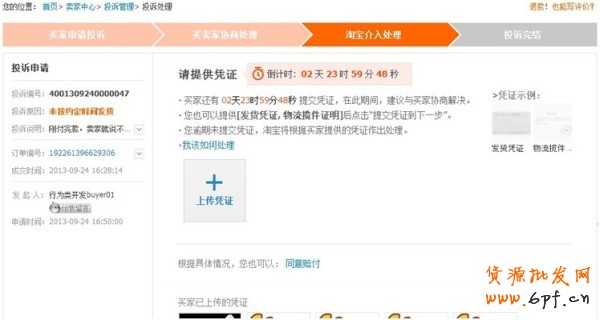 如果賣家不承認買家的投訴理由,即賣家自判無責,則可拒絕處理后進入舉證期,買賣雙方根據舉證內容來提供憑證。