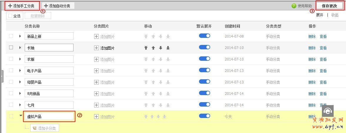 第一步:添加手工分類,在彈出層中直接輸入新分類的名稱,完成后,點擊“保存修改”。