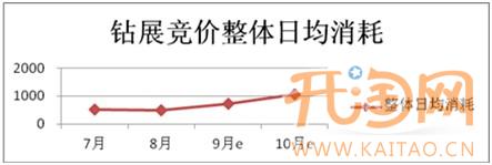 鉆展競價整體日均PV。7月到8月鉆展有效廣告主日均PV有著幅度為6%的小幅下滑。8月到9月日均PV隨即增長達到29.54%,鉆展日均消耗7月到8月下降了2%,9月到8月增長達到46%。可以看出賣家的日均消耗增長幅度遠遠高于日均PV的增長幅度,意味著PV的競爭成本上升。