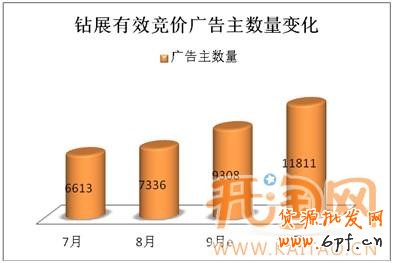 有效廣告主數量。7 月、8月、9月上半月期間,廣告主平均增速為13%。其中,7月上半月到7月底對比增長速度為37% ,8月上半月到8月底對比增長速度為41%,通過數據預測9月上半月到9月底為51%。9月份廣告主預計達到9000個。廣告主月平均增長速度為19%,10月份競價有效廣告主將破萬。