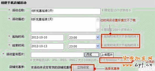 點擊"馬上創建活動"可進入創建手機店鋪活動參數頁面: