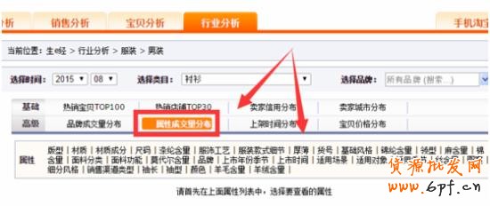 屬性分類的分類參考可以參考后臺(tái)的【寶貝發(fā)布頁面的產(chǎn)品信息板塊】,也可以參考生e經(jīng)專業(yè)版的市場分析中的【屬性成交量分布】一項(xiàng)。