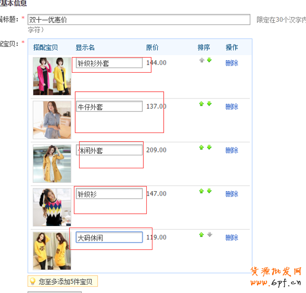 19.把需要“搭配套餐”的寶貝“顯示名都編輯好