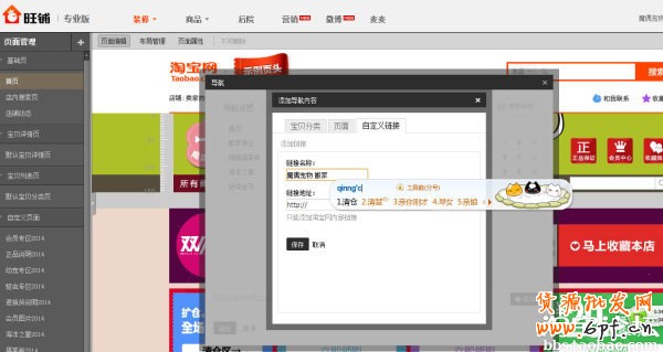 2.進入裝修店鋪,選中導(dǎo)航模塊,點擊“編輯”,在導(dǎo)航設(shè)置里點擊添加,然后選擇“自定義鏈接”,在鏈接名稱那里寫上要顯示的字樣,比如“搬家清倉”,然后在鏈接地址那里寫上咱們的活動頁面的鏈接,點擊保存,確定就可以。