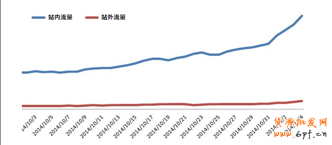 下圖是2014年雙11前的站外流量增長情況: