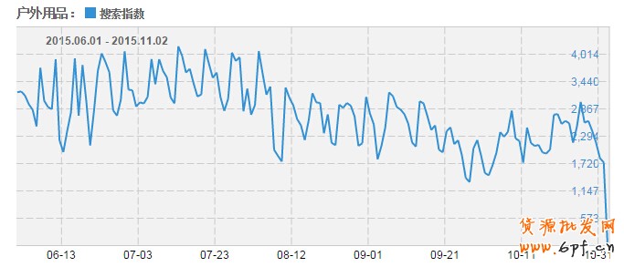 那么出路在哪里?有兩條:第一條就是付費購買專業機構的行業調查報告,首先其權威性是可以保障的,其次數據較新也比較可靠,且基本上后面的分析工作都已經包含在內了;第二條就是免費獲取行業數據,目前可靠的獲取途徑不多,大方向上可以去參考國家統計局所公示的數據,有一個較為籠統的認識后,更為詳盡的行業數據可以在運營過程中通過電商平臺獲取。以淘寶為例,淘寶上的數據魔方(要求是一鉆以上賣家),淘寶指數等都可以為賣家們所用。從淘寶指數來看,當輸入“戶外用品”進行查詢的時候,能夠立刻得到相對準確且全新的消費趨勢。