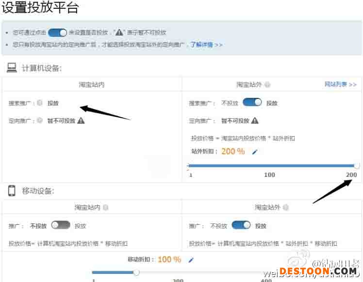 站內能關的都關掉,站外能開的都開開,折扣100%。如果站內關鍵詞搜索推廣無法關掉,就把站外開200%折扣,站內只開搜索推廣。