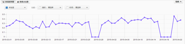 這是3-4月直通車點(diǎn)擊率的數(shù)據(jù),現(xiàn)在點(diǎn)擊率可以穩(wěn)定在0.3左右,甚至有時(shí)候可以達(dá)到0.4