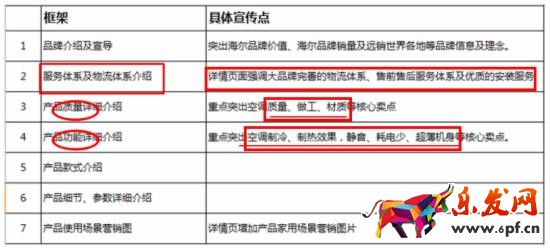把“服務體系及物流體系介紹”、“產品質量詳細介紹”、“產品功能詳細介紹”放在靠前的位置,并且詳細寫出了具體宣傳點。