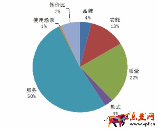 這個圖很清楚的揭示了買家的需求,服務是買家對家用中央空調的需求中最為看重的,其次是質量和功能。