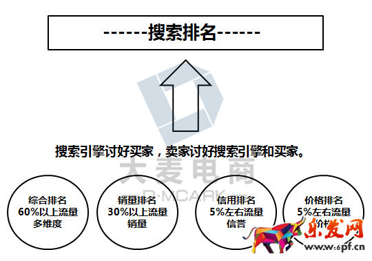 從上圖看到,綜合排名是占比了60%以上的流量,銷量排名占比了30%以上的流量,信用排名占比了5%左右的流量,價格排名占比了5%的流量,定制這個搜索引擎出來,平臺是為了討好買家,讓買家覺得平臺好,服務好,搜索人性化,同時平臺的搜索規則也做就了商家怎么運營,所以商家是為了討好搜索引擎和買家而且做運營,最終得出來的結果就是,搜索排名的優化策略。