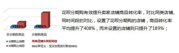 2) 花唄分期還有效提升商品購買轉化率,買家只要看到分期付款,就能買到