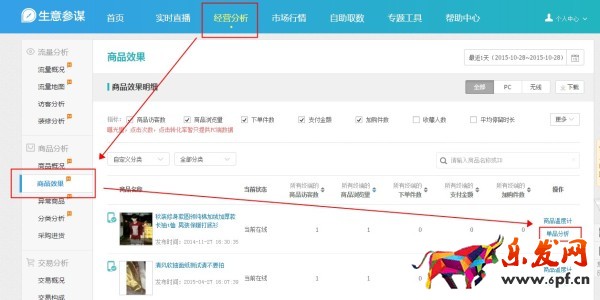 b. 打開生意參謀d.alibaba.com,選擇經營分析,查看商品效果,可根據商品銷售的情況選擇熱賣單品查看單品分析。