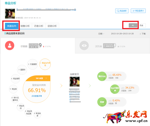 1. 66.91%來自淘寶站內其他,65.43%跳出本店流失。